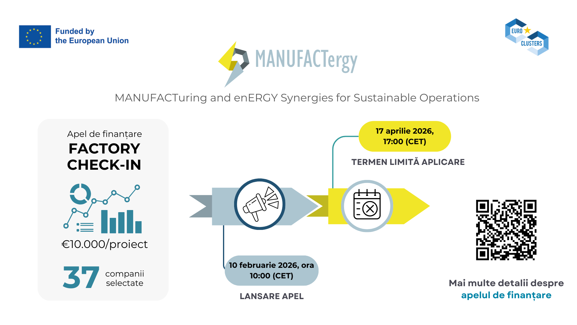 - Deschidere apel: 10 februarie 2026, 10:00 CET