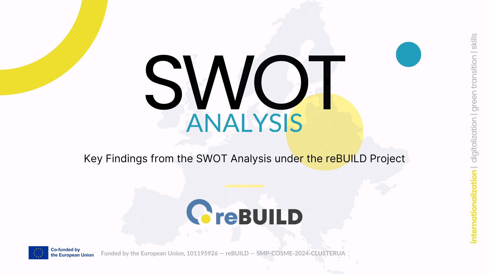Between February and July 2025, the reBUILD team conducted a SWOT analysis based on 33 interviews with cluster representatives, SMEs, and other stakeholders from Slovenia, Spain, Romania, and Ukraine.